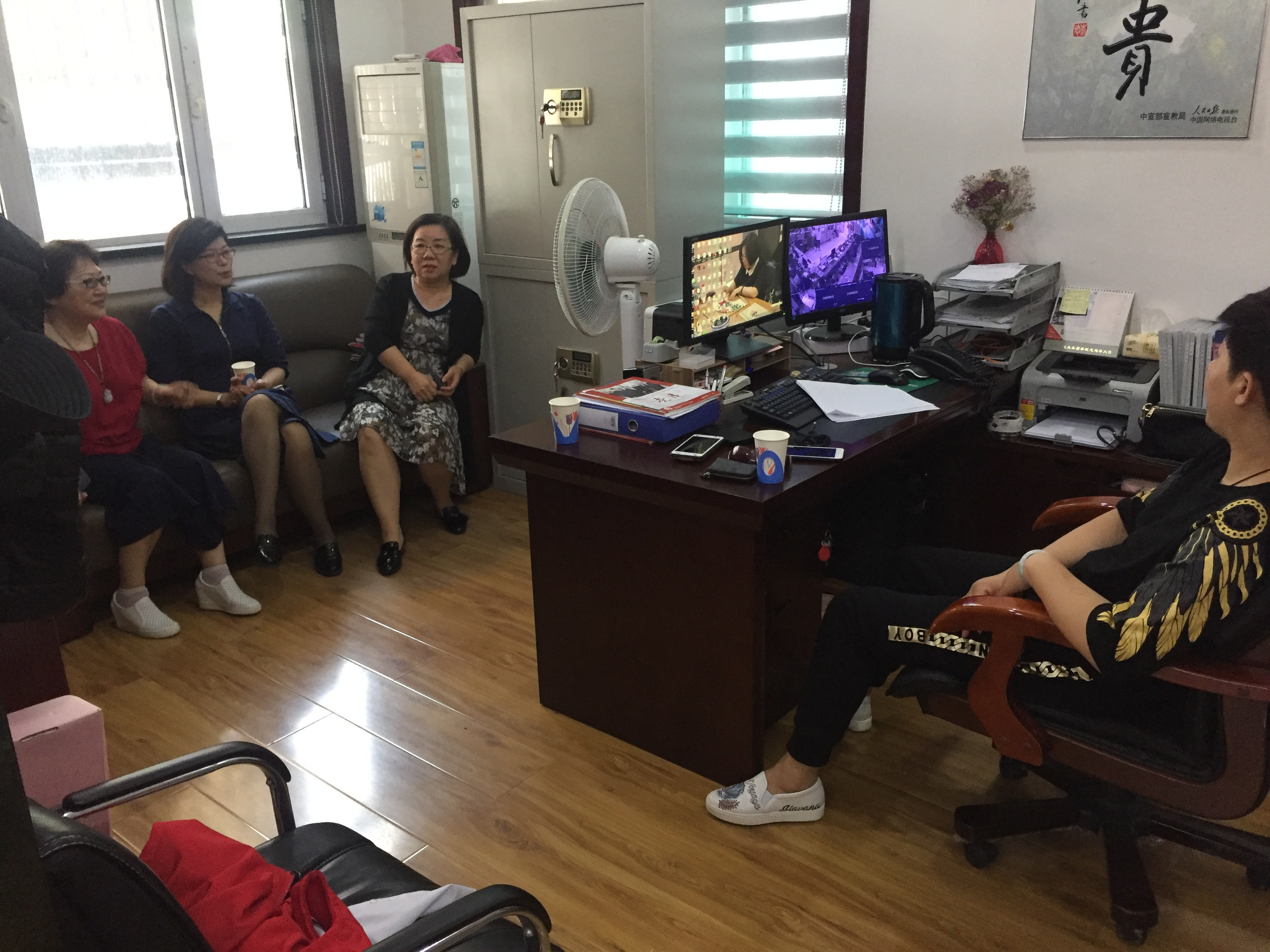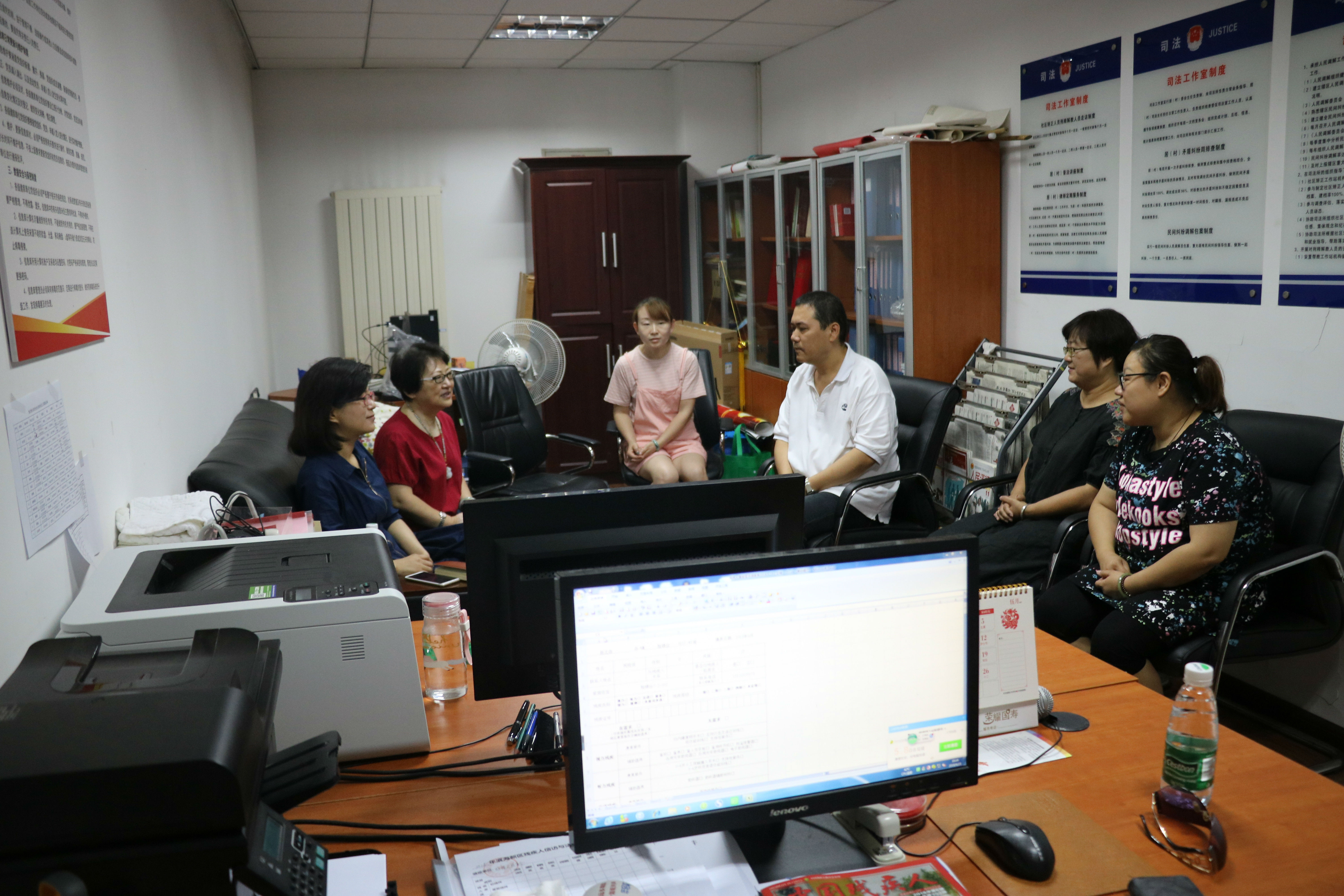 杨书记一行首先听取了新新家园社区党委书记刘佳敏、贻锦台社区党委书记王振东关于“两委”换届工作的情况汇报,了解到居委会换届选举工作正严格按照方案要求和日程安排进度顺利进行,目前总体进展顺利。