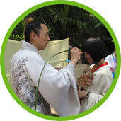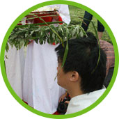 端午时人们将雄黄浸入酒后再用菖蒲艾蓬蘸洒墙壁角落、门窗、床下等,再用酒涂小儿耳鼻、肚脐,以驱毒虫,求小儿平安。