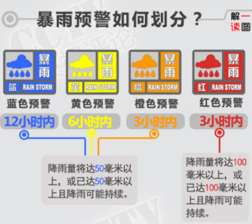 预警信号是各级气象主管机构所属的气象台站向社会公众发布的预警信息,由名称、图标、标准和防御指南组成,分为雷电、暴雨、大风、干旱、台风、高温、道路结冰、大雾、寒潮、冰雹、霜冻、霾、沙尘暴、暴雪等14种。气象预警信号总体上分为蓝色、黄色、橙色、红色四个等级,分别代表一般、较重、严重和特别严重。随着主汛期到来,暴雨天气将对我们的工作和生活造成影响,今天我们将为您介绍暴雨预警信号及相关应急避险常识。