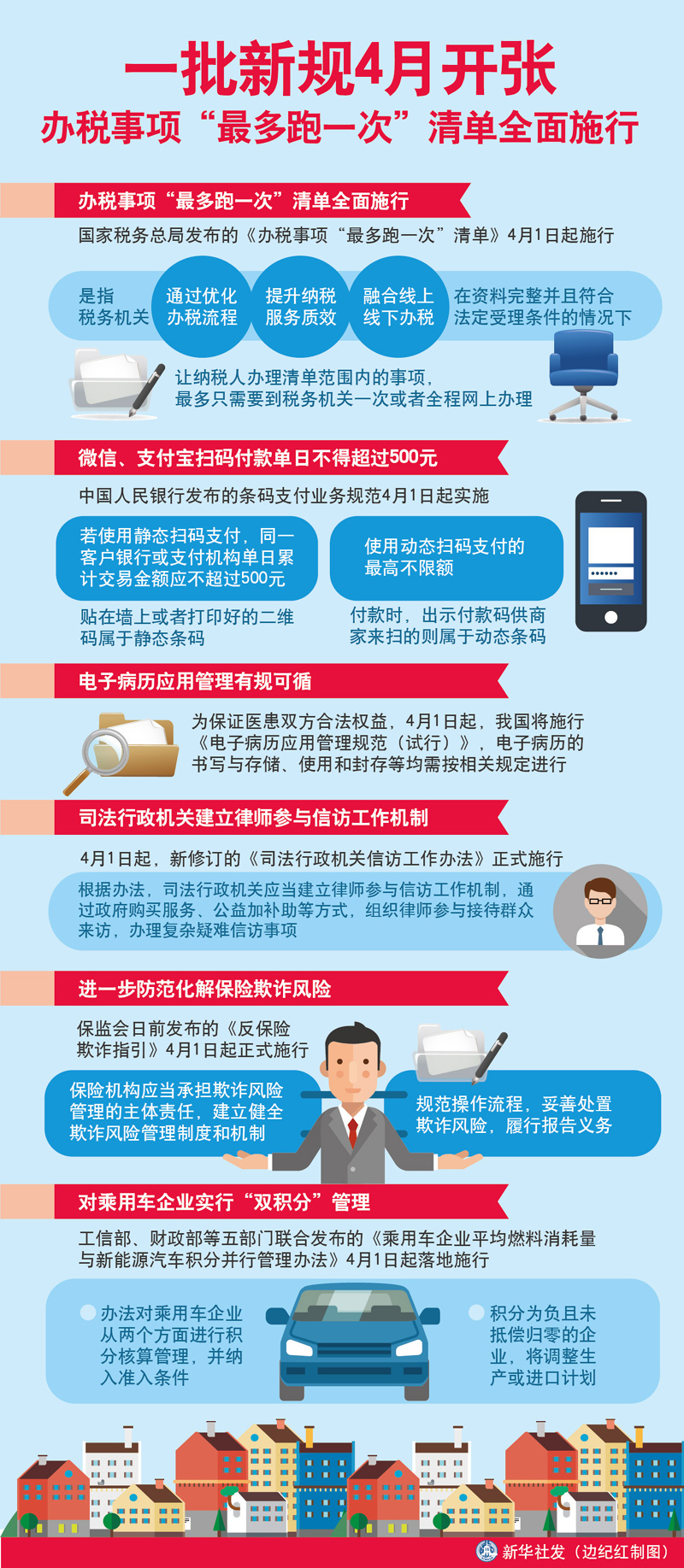 图表:一批新规4月开张 办税事项“最多跑一次”清单全面施行
